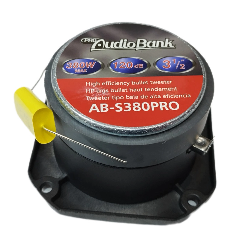 این مدل سوپر توییتر آودیو بانک مدل AB-S380PRO مناسب کنار میدرنج های 8 اینچ است صدای شفاف و کریستالی به شما ارائه می دهد همچنین خازن کنار این محصول باعث شفاف تر شدن صدای توییتر میشود