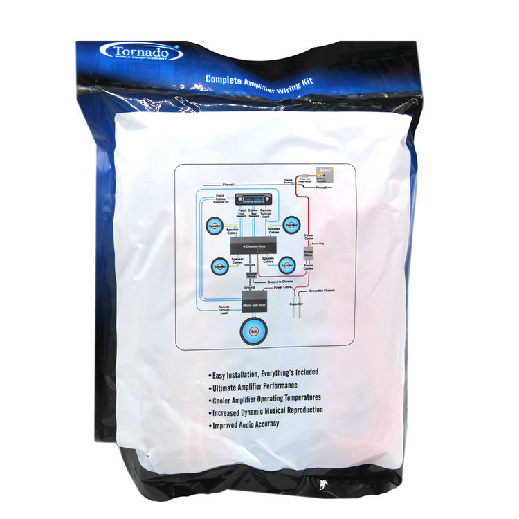 این کابل دارای یک کابل برق 8 گیج 5 متری است و کابل اتصال به بدنه 8 گیج 1 متری دارد. دارای 1 جفت کابل RCA به طول 5 متر است و کابل اسپیکر 18 گیج 5متری و یک کابل ریموت 5 متری دارد