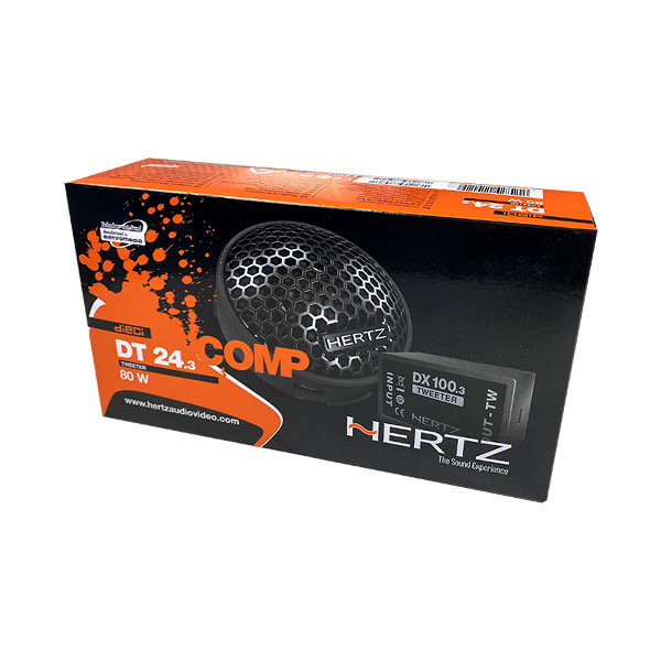 توییتر DT 24.3 هرتز از سری دایچی (dieci) شرکت هرتز است که شکل ساختمان این تیوتر Semi dome یا نیمه گنبدی است. از مگنت نئودیمیومی با تراکم بالا بهره می برد و ساختار فشرده و رفتار خطی در واکنش های فرکانسی از ویژگی های اصلی Hertz DT24.3 است. جنس صفحه این توییتر از نوع اتر ایمید (PEI Memberan) است که دارای نرمی و انعطاف پذیری مطلوب، زاویه تابش صدای کنترل شده و همچنین مقاومت حرارتی بسیار عالی می باشد و در ولوم های بالا به راحتی میتواند سیستم صوتی شمارا همراهی کند و دچار در هم ریزی و سوختگی نشود. این توییتر با طراحی بدنه یونیورسال بر روی تمامی خودرو ها قابل نصب است و دارای پایه های اضافی جهت نصب به صورت روکار و یا توکار در بسته بندی خود می باشد. راه اندازی آن بسیار راحت و ساده بوده و می توان با انواع رادیوپخش های فابریک یا افترمارکت در قسمت جلو یا عقب اتومبیل جهت تکمیل کردن پوشش فرکانسی باند ها استفاده کرد. در بسته بندی محصول پایه های اضافی جهت نصب روکار و توکار قرار داده شده تا بتوان در انواع خودرو ها به بهترین شکل نصب نمود.