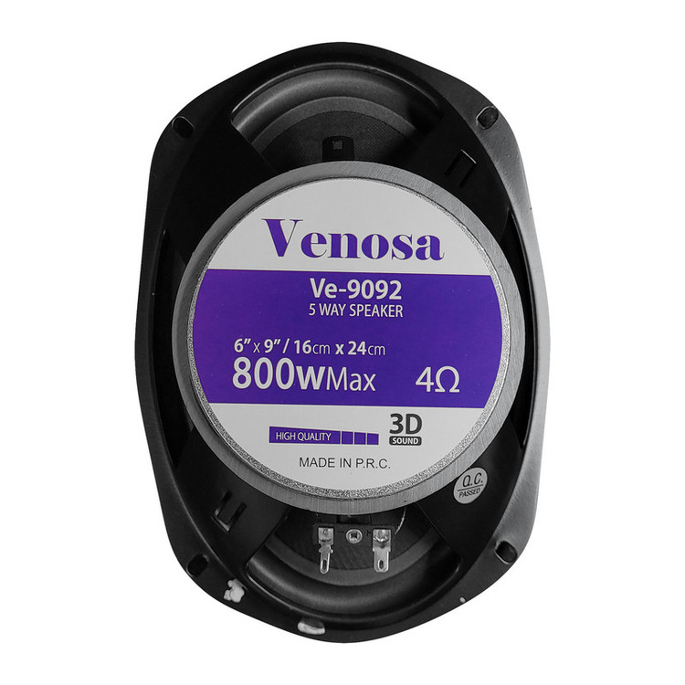 بلندگوی ونوسا مدل VE-9092یک بلندگوی طرح کنوود 5طرفه میباشد و دارای تیوترهای 4طرفه با مگنت 25OZاست حداکثر توان بلندگوی ونوسا طرح کنوودی 800 وات بوده و طراحی کاملا مشابه بلندگوهای کنوود میباشد واکنش فرکانس بلندگوی VE-9092بین35تا 25000هرتز است ودارای حساسیت 93دسیبل میباشد این بلندگو دارای ویس کوئل 32میلی متری با ووفر 237میلی متری هستش که باعث عمق بیس زنی بیشتر میشه این بلندگو نیازی به امپلی فایر نداره و بدون امپلی فایرهم صدای دل نشینی به شما میدهد.