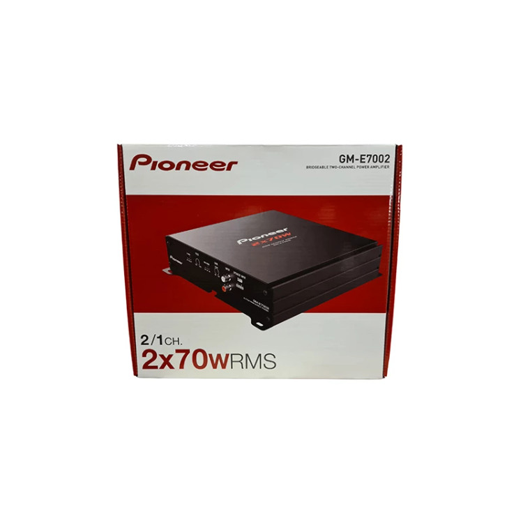 آمپلی فایر پایونیر مدل GM-E7002 یکی دیگر از محصولات شرکت پایونیر در زمینه آمپلی فایر خودرو میباشد.پایونیر نامی آشنا برای دوست داران این صنعت در زمینه سیستم صوتی خودرو میباشد.آمپلی فایر پایونیر 7002 یک آمپ دو کانال بوده و از کیفیت ساخت بسیار بالایی برخوردارست.این محصول که رتبه خوبی در بین آمپ های این برند در کلاس AB داشته از قدرت بالایی بهره میبرد.محصولی که به راحتی میتواند انواع اسپیکرهای کواکسیال،میدرنج،فول رنج،کامپوننت و … را راه اندازی کند.آمپلی فایر 7002 پایونیر این قابلیت را دارد تا بتواند انواع ساب ووفر های میان رده را درایو کند.توان خروجی مداوم این محصول 70×2 وات بر روی 4 اهم،95×2 وات بر روی 2 اهم و 190×1 وات در حالت پل (Bridge) میباشد.محدوده فرکانس پاسخگویی آمپ 7002 پایونیر نیز بین 15 تا 22 کیلو هرتز بوده و نسبت سیگنال به نویز آن نیز 80 دسیبل میاشد.یکی از مهمترین امکانات آن ورودی های لول (High Level) بوده که از طریق آن میتوانید پخش های فابریک(بدون خروجی مستقیم RCA) را نیز به این آمپ متصل کنید و نیاز حتمی به پخش های رده بالا نیست.