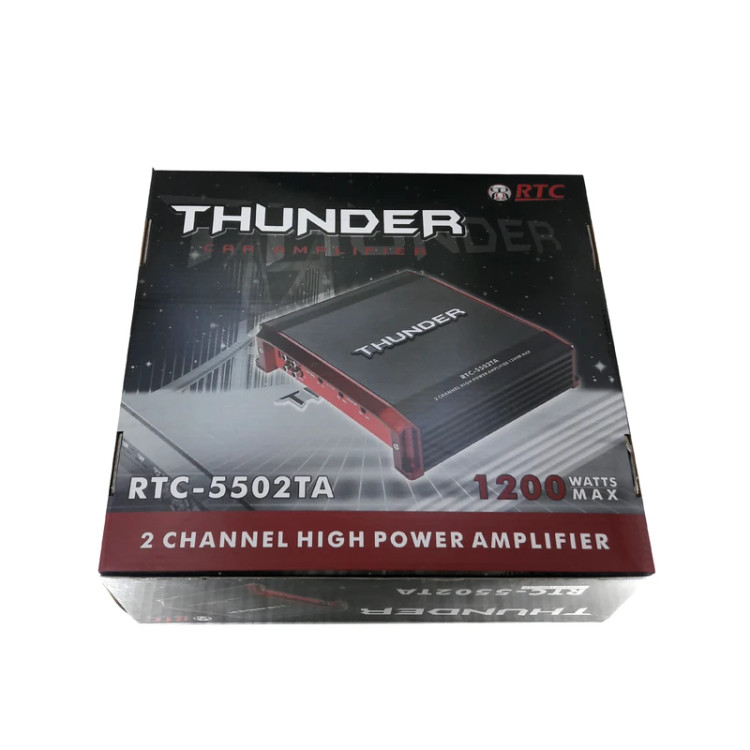 آمپلی فایر خودرو تاندر مدل RTC-5502TA را میتوان از میان رده ترین آمپلی فایر های شرکت THUNDER دانست.آمپلی فایر تاندر 5502 یک آمپلی فایر 2 کانال بوده و قابلیت های بسیار زیادی دارد.این آمپلی فایر دارای بیشینه حداکثری 1200 واتی بوده و قابلیت پل زنی نیز دارد.آمپلی فایر دو کانال تاندر 5502 بیشتر برای کسانی مناسب است که میخواهند یک جفت باند یا میدرنج به آن نصب کنند،همچنین ساب ووفر های سبک را میتوان با این آمپلی فایر راه اندازی کرد.توان خروجی مداوم این آمپلی فایر 55×2 وات بر روی 4 اهم و 110×2 بر روی 2 اهم و 220×1 وات در حالت پل (Bridge) میباشد.در ساخت این آمپلی فایر از قابلیت HPF/LPF استفاده شده که مناسب کسانی است که نیاز به تنظیمات بهتری دارند.