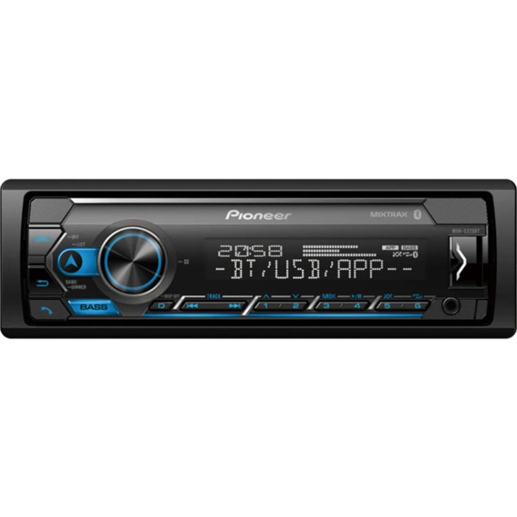 پخشکنندهی خودروی « MVH-S325BT» از محصولات کمپانی «پایونیر» (Pioneer) است. این محصول با امکانات و ویژگیهای جالبی طراحی شده است. MVH-S325BT به یک عدد پورت USB مجهز است که از طریق آن میتوانید فلشمموری خود را به آن متصل کرده و از فایلهای دلخواهتان در خودرو استفاده کنید. برای راحتی کاربران، این پورت در قسمت جلویی بدنه تعبیه شده است؛ همچنین در صورتی که مایل باشید فایلهای موجود در MP3 Player خود را از ضبط خودرو بشنوید، میتوانید با استفاده از پورت AUX این مدل، پخشکنندهی موسیقی تان را به آن متصل کنید. گفتنی است که سیستمعامل سازگار با این دستگاه، اندروید و iOS هستند که میتوانید با اتصال تلفن همراه از طریق کابل، بلوتوث و اپلیکیشن پایونیر فایلهای صوتی موجود در آن را به پخش بگذارید. فرمتهای صوتی MP3 / WMA / AAC / WAV / FLAC در این مدل پشتیبانی میشوند تا کاربران بهراحتی از فایلهای موردنظر خود استفاده کنند. بیشینه توان خروجی این دستگاه 4 × 50 وات بوده و کیفیت آن 16 بیتی است. برای پخش فایلها از این دستگاه میتوانید از فلشمموری یا گوشی خود استفاده کنید. در جعبهی این محصول، ریموت کنترل، میکروفون و کابل رابط وجود دارند گفتنی است این محصول از سازگار با استاندارد 2006 CEA پشتیبانی میکند و میتوانید از Spotify برای پخش در آن استفاده کنید. هم چنین، می توانید با استفاده از این دستگاه مکالمات خود را مدیریت کنید و از دستیار صوتی Siri و یا GOOGLE ASSISTANT استفاده نمایید. قابلیت MIXTRAX نیز برای اتصال مستقیم به سابوفر نیز برای این محصول در نظر گرفته شده است.