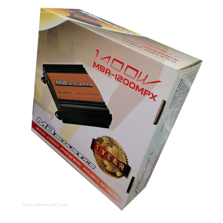 آمپلیفایر مدل «MBA-1200MPX» از محصولات برند «ام بی آکوستیکس» (MB Acoustics) است که از طراحی زیبا و کیفیت ساخت بالایی بهره میبرد. این محصول از نوع آمپلیفایرهای 2 کاناله بوده و مربعی شکل است، به دلیل ابعاد کوچکش نسبت به آمپلیفایرهای 4 کاناله، گزینهای مناسب برای کاربرانیست که نیاز بیشتری به فضای صندوق عقب خود دارند. این دستگاه ساده و با کیفیت بوده و بیشینه توان خروجی آن 1400 وات است که این عدد قدرت نسبتاً خوب دستگاه با توجه به ابعاد کوچکش را بیان میکند. پاسخ فرکانسی 10 تا 50000 هرتز که در بسیاری از آمپلیفایرها تعبیه شده، با توجه به نزدیک بودنش به فرکانس شنوایی انسان، به شما امکان شنیدن اکثر صداهای تولید شده را میدهد. همچنین برای توضیح بیشتر راجع به کیفیت محصول، میتوان به اعوجاج کمتر از 0.05 درصد و نسبت سیگنال به نویز بیش از 90 دسیبل آن اشاره کرد. کابل همراه دستگاه یک کابل مرغوب تمام مس باخلوص 100 درصد و فیش های فلزی بوده تا سیگنال را بدون افت کیفیت انتقال دهد.لازم به ذکر است که کمپانی ام بی آکوستیکس که در زمینه دستگاههای صوتی و تصویری خودرو فعالیت دارد، با توجه به کارکرد رقبای بسیار بزرگ در این صنعت، توانسته سهم قابل توجهی از بازار را به خود اختصاص دهد، چرا که همواره جلب رضایت کاربران را سرلوحهی فعالیتهای خود قرار داده است.