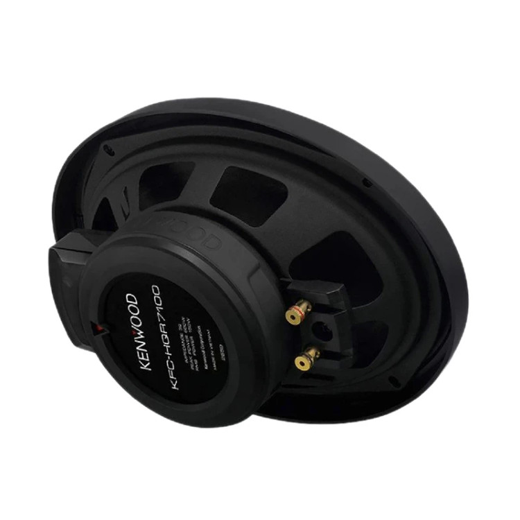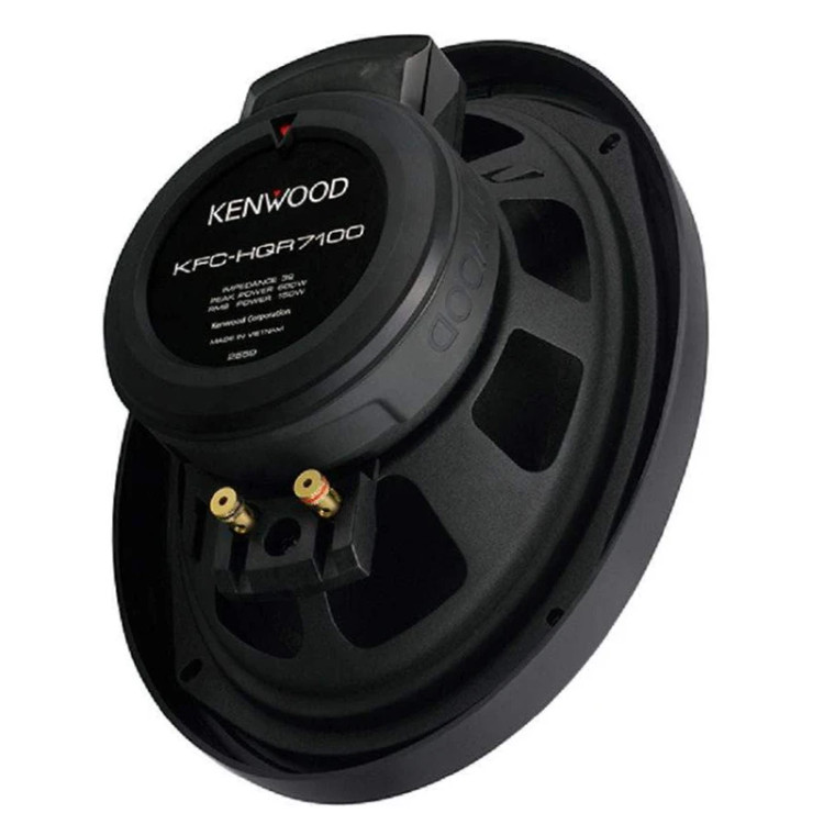 «KFC-HQR7100» نام یکی از اسپیکرهای خودروی کننوود است که مانند سایر محصولات این شر کت از کیفیت ساخت بالایی برخوردار است و میتواند صدایی قدرتمند را به گوش شما برساند. بیشینه صدای خروجی دستگاه چیزی در حدود 600 .وات است که صدای با کیفیتی محسوب میشود. در کنار این مقدار میتوان به توان اسمی 150 واتی آن هم اشاره کرد که بیانگر تولید یک صدای بسیار خوب در خوب در روی شماست. این محصول دارای امپدانس 3 اهم و قدرت فرکانس 63 تا 20000 هرتزی است. ابعاد این بلندگو 7 × 10 اینچ بوده و لایهی محافظ آن بلندگو را در برابر آسیب دیدن بر اثر بیس بالا مقاوم میسازد. همچنین این اسپیکر مانند هر اسپیکر باکیفیت دیگر، مجهز به ووفر، میدرنج و توییتر است که ابعاد آنها به ترتیب 254×177.8، 25 و 70 میل متر است. کارایی امکانات نامبرده، تقویت انواع صدا اعم از صدای زیر ، حد وسط و بم است. همچنین کیفیت صدای هر اسپیکر تا حد زیادی به این موارد بستگی دارد. شایان ذکر است کمپانی کنوود، در تولید اسپیکر همواره عملکرد خوبی داشته و محصولاتش در این زمینه قابل رقابت با برندهای دیگر هستند.