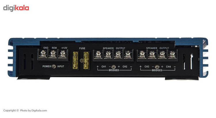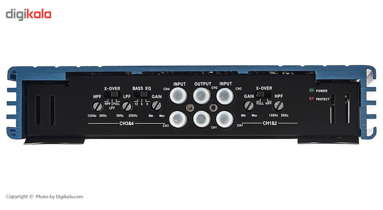 محصولی که در این قسمت مشاهده میکنید آمپلیفایر MBA-4120XF ساخت شرکت MB Acoustics است. آمپلیفایر خودرو که در کنار سیستم صوتی به کار میرود برای تقویت صدایی به کار میرود که به بلندگوها ارسال میشود. در اکثر سیستمهای صوتی بدون استفاده از آمپلیفایر نمیتوانید از حداکثر توانایی بلندگوهای خود استفاده کنید. این آمپلیفایر بهصورت 4 کاناله طراحی شده است که بدین معنی است که میتواند 2 جفت اسپیکر را پشتیبانی کند. البته برخی افراد از این سیستم برای راهاندازی یک جفت اسپیکر و 1 عدد سابووفر استفاده میکنند. نکتهای که در خرید آمپلیفایر به آن دقت کنید توان بلندگوها و سازگاری آن با توان خروجی مداوم آمپلیفایر است. بر طبق مشخصات این محصول، این آمپلیفایر قادر است اسپیکرهایی با توان 40 وات را راهاندازی کند. همچنین میتوانید با روش پلزنی 2 خروجی با قدرت 160 وات از این آمپلیفایر بگیرید و از آن بهتنهایی برای راهاندازی سابووفرهای قوی استفاده کنید.