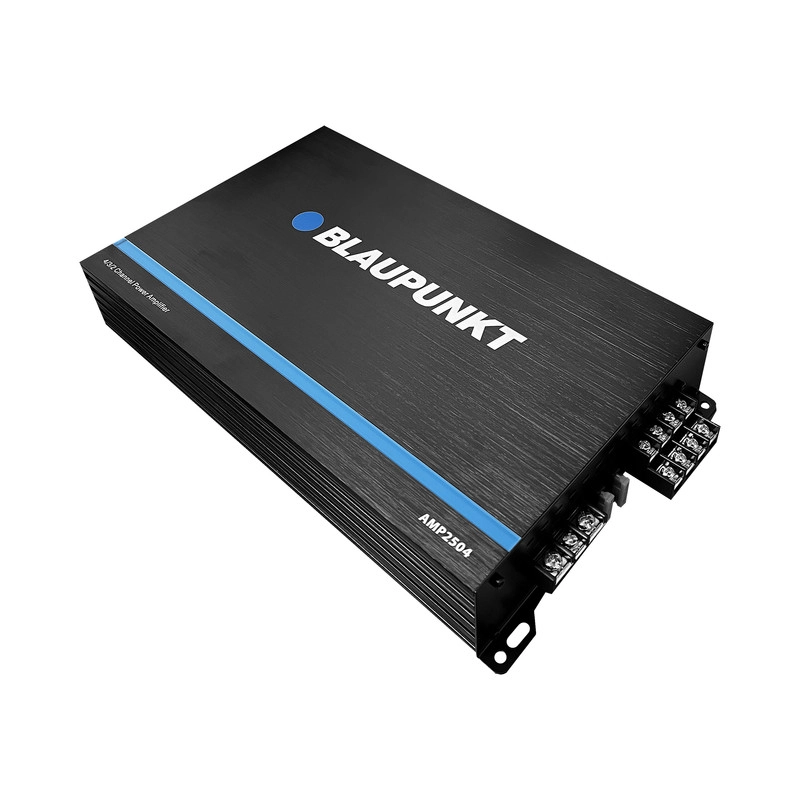 آمپلی فایر چهار کانال بلاپانکت مدل 2504 یکی از خفن ترین آمپلی فایر های قیمت مناسب با اصالت موجود توی بازار می باشد که به شدت از قیمت و کیفیت فوق العاده ای برخوردار می باشد. در ادامه به بررسی مشخصات و ویژگی های این محصول ارزنده و با اصالت خواهیم پرداخت ، که پیشنهاد می شود ، تا آخر مشخصات این محصول را مطالعه بکنید: اگر شما هم به دنبال خرید یک آمپلی فایر خوش ساخت ، خوش قیمت و فوق العاده با کیفیت هستید ، بدون شک این محصول برای شما یکی از بهترین و ایده آل ترین گزینه های ممکن محسوب می شود. آمپلی فایر چهار کانال بلاپانکت مدل 2504 همان طور که از اسم آن مشخص هستش ، توی دسته بندی آمپلی فایر های استریو چهار کانال قرار می گیرد. آمپلی فایر چهار کانال بلاپانکت مدل 2504 دارای ترمنیال های پیچی سوکتی می باشد که از کیفیت خوب و قابل توجهی برخوردار می باشد و دارای متریال و آلیاژ با کیفیتی می باشد. ورودی های آرسی که برای این محصول در نظر گرفته شده از نوع معمولی بوده و دارای کیفیت خوبی می باشد ؛ همچنین دارای تنظیمات کامل و آنالوگ می باشد که می توانید به خوبی بر روی کانال های 3 و 4 ساب ووفر را هم نصب بکنید. آمپلی فایر چهار کانال بلاپانکت مدل 2504 قابلیت پوشش و اجرای بازه فرکانسی 10-30000 هرتز را دارا می باشد که می توانید تمامی درایور ها یا به اصطلاح بلندگو ها را با این آمپلی فایر نصب و راه اندازی بکنید. آمپلی فایر چهار کانال بلاپانکت مدل 2504 دارای ظاهری جذاب ، خفن و منحصر بفرد می باشد که طراحی و ایده پردازی با اصالت آلمانی را به رخ کشانده و به شما احازه خرید کالای اصلی و با اصالت را با قیمت بسیار مناسب می دهد. این محصول دارای حساسیت بالایی می باشد که برابر با 96 دسیبل بوده و به همنی دلیل راه اندازی بسیار ساده ای داشته و قابلیت نصب و راه اندازی سیستم های رده بالا و نسبتا سنگین بازار را بهش ما می دهد. آمپلی فایر چهار کانال بلاپانکت مدل 2504 دارای مشخصات و توان خروجی می باشد که در ادامه می توانید آن ها را مشاهده بکنید: 150x4 وات آرامس بر روی 4 اهم 250x2 اهم وات آرامس بر روی 2 اهم 350x2 وات آرامس بر روی 4 اهم