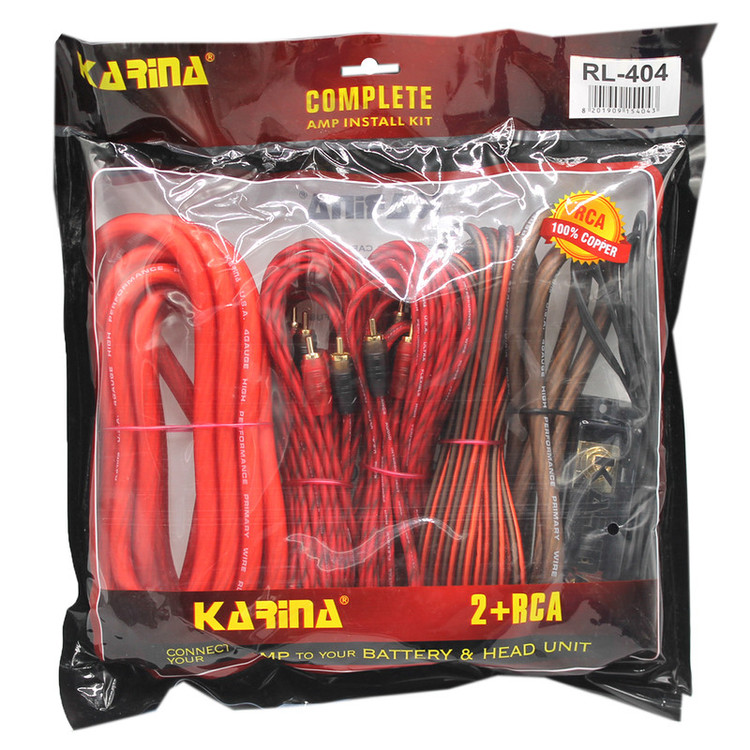 سیم پک مدل RL-404 : سیم پک گیج 4 شرکت کارینا با 2 جفت RC می باشد. این سیم پک دارای 700 رشته سیم می باشد. تعداد بالای رشته سیمها باعث می شود کیفیت کار این سیم پک فوق العاده بالا باشد و از سیم پکهای گیج 4 مشابه در بازار کیفیت بالاتری داشته باشد و همین امر دلیل اصلی عدم وجود هیچگونه نویز در سیستمهایی با این سیم پک می باشد. 404 با توجه به داشتن 2 جفت RC برای استفاده در کنار آمپلی فایرهای 4 کانال مناسب می باشد. یک سیستم خوب و بدون نویز و به بهترین شکل ممکن سیستم رو جمع کنن این نکته خیلی مهمه و حتما توجه کنین.یکی از بخش های اصلی سیم ها هستن این نوع سیم از کیفیت قابل قبولی برخوردار است و درصطح بالایی جمع بندی میشه ولی این نکته خیلی مهم این نوع چهارگیج است و برای باتری های ۶۰امپر تا ۸۰/۸۵ آمپر مناسبه و باید قبل از خرید یه نگاهی به آمپر باتری خوردرو انداخت و بعد سیم را تهیه کرد و اونایی ک زیر ۶۰آمپر است باید ۸گیج تهیه کنن و اونایی ک بین ۹۰ تا ۱۵۰ آمپر است باید دوگیج تهیه کنن و اونایی هم ک سیستم قول و پرقدرتمند میبندن نیازشون ۰ گیج است. سیم پک ها از گیج 0 به عنوان قویترین حالت تا گیج 8 به عنوان معمولی ترین حالت رده بندی می شوند. سیم پک ها رده بندی بترتیب، گیج 0، گیج 2 ، گیج 4، گیج 6 و گیج 10 دارند. استفاده از سیم پک باید مطابق سیستم باشد و انتخاب سیم پک گیج قدرتمند برای سیستمهای معمولی خیلی بصرفه نمی باشد. همانطور که قبلا گفته شد تنها گیج در رده بندی سیم پک ها مهم نیست بلکه رشته سیمهای درون آنها نیز بسیار مهم است. در حالت عادی سیم پک های حدود 650 تا 700 رشته دارند که برای سیم پک گیج 4 نمره بالایی نمی باشد.