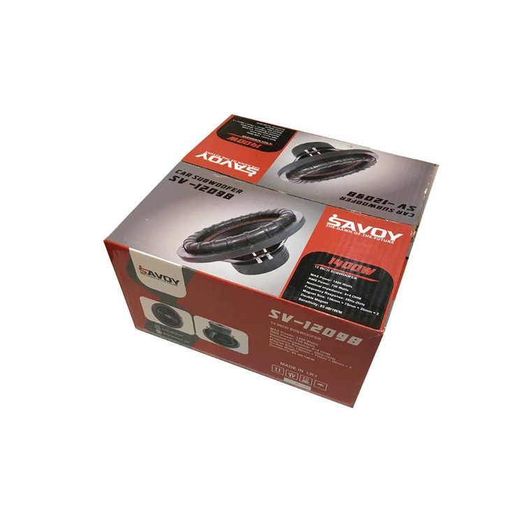 ساب ووفر ساووی SV-1209B این ساب یکی از بهترین و قدرتمندترین ساب برند ساووی است که توان رقابت با ساب های برند را دارد. این ساب 12 اینچ است و با توان خروجی 1400 وات مکس و 700 وات RMS بر روی 4 اهم است. ساب ساووی SV-1209B همان ساب ساووی SV-1209R است و تفاوت در رنگ آن ها با حروف انگلیسی B به معنای (Black) و R به معنای ( Red) نشان داده شده است. ویژگی های هر دو کاملا مشابه یکدیگر است و هر دو پرقدرت و با کیفیت هستند و تنها تفاوت در رنگ قرمز و مشکی آن ها می باشد.