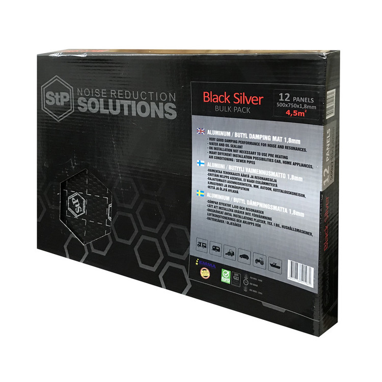 برای کسب بالاترین لذت شنیدن موسیقی در خودرو، باید عواملی که مانع این کار هستند را با نصب ورق دمپینگ از بین برد تا اتاق خودرو به فضایی آکوستیک و موسیقی پذیر تبدیل بشود. نصب ورق دمپینگ بر بدنه داخلی خودرو، از موثرترین روشهای دفع صداهای خارج از خودرو است که در عین حال که موجب دفع نویز و ارتعاشات بدنه خودرو می شود، در جلوگیری از ورود حرارت ایجاد شده در بدنه بیرونی خودرو به داخل کابین نیز موثر است و با ایجاد فضایی آکوستیک موجب بهبود کیفیت موسیقی در حال پخش می شود. ورق دمپینگ خودرو برند STP مدل Black Silver توسط شرکت STANDARTPLAST در کشور روسیه ساخته می شود که این شرکت از سال 1996 بصورت تخصصی در این زمینه فعالیت می کند که در حال حاضر از متخصص ترین تولید کنندگان این محصولات در دنیا است، زیرا برای قسمت های مختلف بدنه داخلی خودرو و کاربردهای خاصی مانند ایجاد عایق صوتی، ارتعاشی و حرارتی، محصولات متنوعی را بطور همزمان تولید می کند. مواد مورد استفاده در ساخت این نوع ورق دمپینگ خودرو از نوعی پلیمر به نام بوتیل است که ضریب جذب ارتعاش و نویز خیلی خوبی دارد. فاقد بو و مواد مضر برای سلامتی است. به دلیل خود چسب بودن و ضخامت بسیار کم 1.8 میلی متر ، نصب آن بسیار آسان است و با آموزشی بسیار مختصر، خودتان نیز می توانید به نصب آن بر بدنه داخلی خودرو اقدام کنید. مواد مورد استفاده در ساخت ورق دمپینگ در مقابل حرارت بالا آنقدر مقاوم است که هیچوقت شعله ور نمی شود. ابعاد هر ورق 50 در 75 سانتی است. این نوع ورق دمپینگ خودرو بر قسمت های مختلف بدنه داخلی خودرو از قبیل درب ها، سقف، گلگیرها، صندوق، کاپوت و سطوح فلزی دیگر قابل استفاده است.