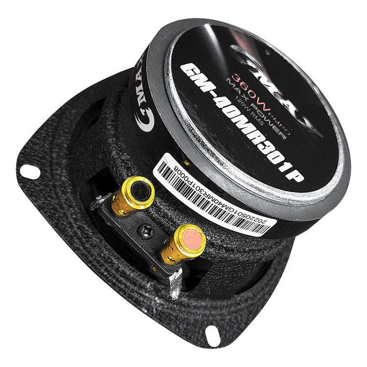 میدرنج 4 اینچ جیمکس مدل Gmax GM-40MR301P مناسب درب جلو خودروهای خانواده سایپا،این میدرنج به صورت پک بوده و بسته دو عدد می باشد. حداکثر توان میدرنج 4 اینچ جی مکس 360 وات می باشد. توان مدوام هر عدد میدرنج 4 اینچ جی مکس 120 وات RMS حساسیت نسبت به فرکانس ان 88 دسیبل می باشد. مقاومت 4 اهمی این میدرنج باعث کیفیت صدا بهتر می شود. سایز مگنت میدرنج جی مکس 12oz و نوع بولت استفاده شده در 40MR از نوع فلزی بوده که باعث دقت بالای اجرای فرکانس میانی می شود. جنس صفحه کاغذی و از یک قاب تور فلزی برای حفاظت از صفحه میدرنج استفاده شد.